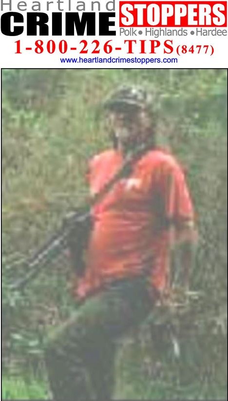 At around 5:30 p.m. on August 14, 2022, a game camera in the southeast Lakeland area captured this photo of the suspect who was armed with an AR15 style rifle. He may have been illegally hunting. Before he left the area, he removed the game camera that captured the photo.